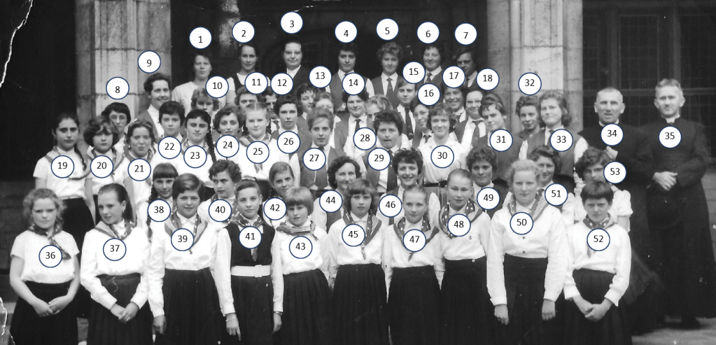 | 4 Ria Van de Mier | 9 Maria Van de Cloot | 14 Godelieve Wouters (dirigent) |