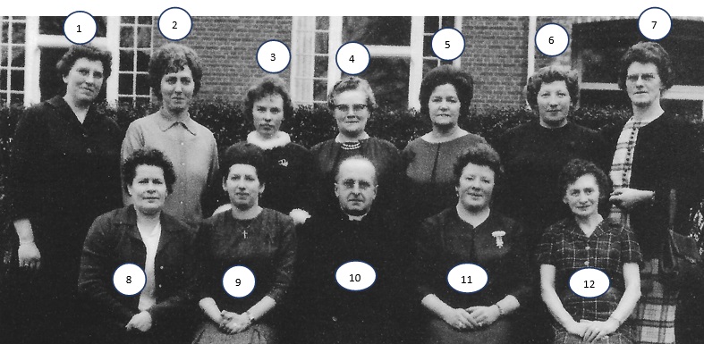 | 9 Florentine Jordaens (x Van Dievoort) | 22 Hortensia Bosschaerts (Stans Pan) (x Florentius Mariën) | 35 Irma Mariën (x Louis Bogaerts) | 48 Yvonne De Wolf (x Louis Nauwelaers) | 61 Maria (Marie) Van der Schoot (x Alfons Cautereels) |
