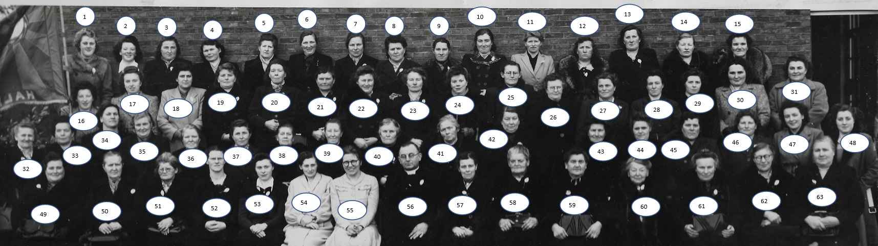 | 5 Paulina (Plien) Jacobs (x Karel Van Wesenbeeck) | 18 Adel Breugelmans (Karel Garrousse) | 31 Maria (Mit) Gysels (x Louis Mariën) | 44 Marcellina Storms (x Jos Somers) | 57 Leonie Block (x Karel Van den Broeck) |