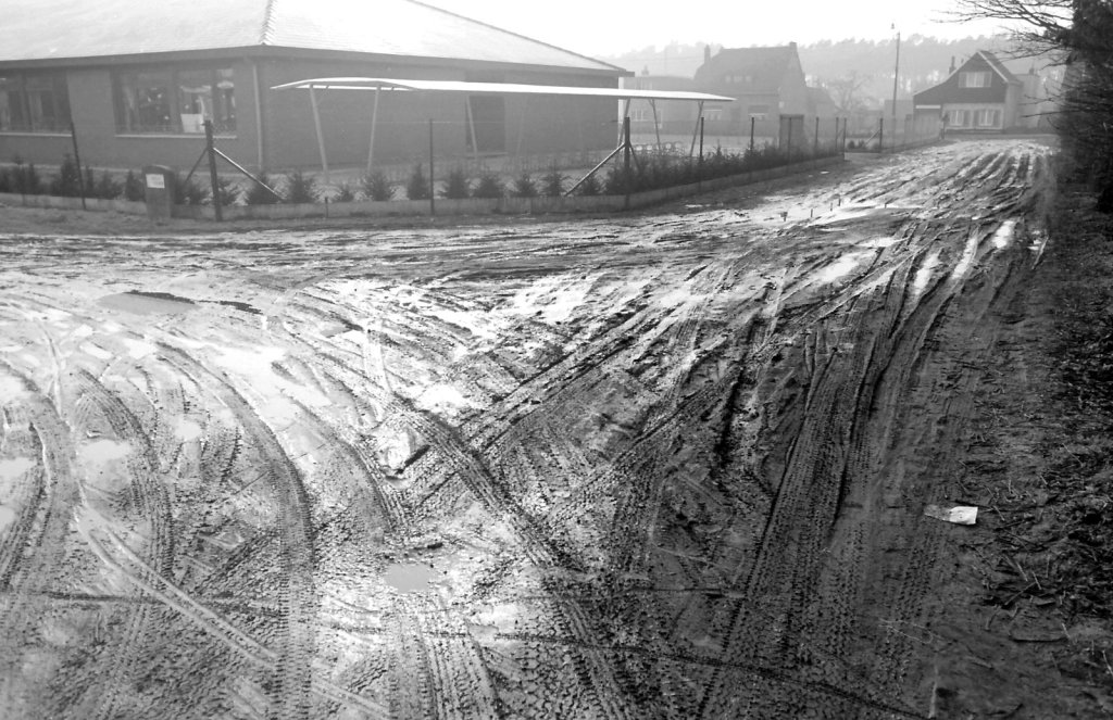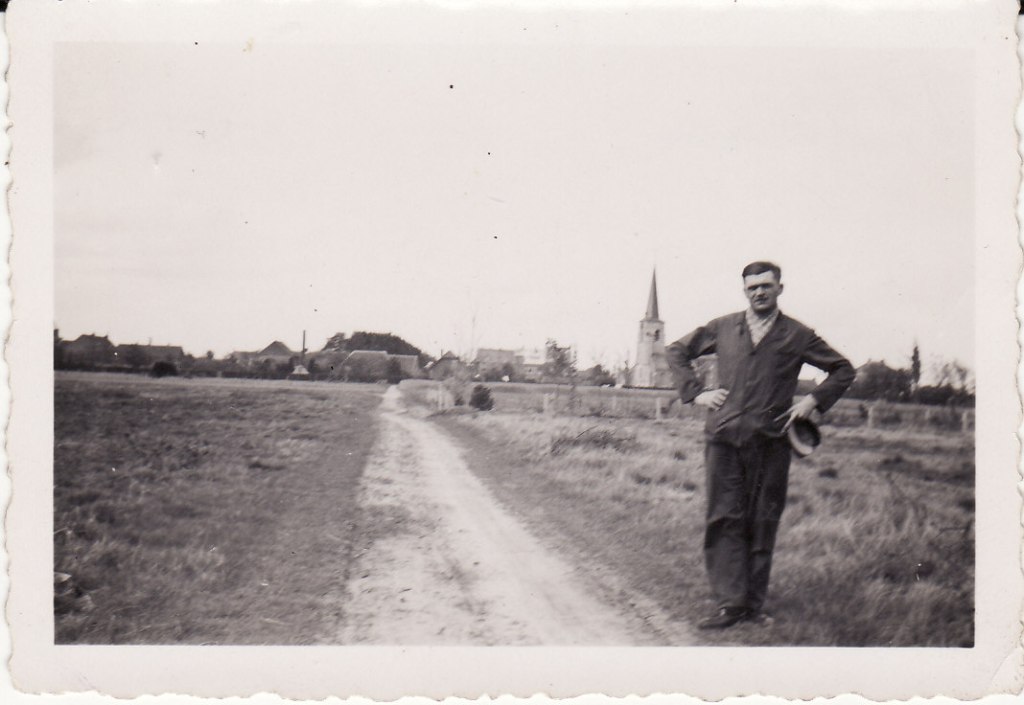wij woonden eind jaren ’50 en ’60 en ’70 in de Moleneinde in Halle. Op de grens met Oelegem en Zandhoven. De weg was er bijna zoals in Halle Velden. Zeker in de winter wanneer het veel regende en sneeuwde. De weinige auto’s die er waren reden zich vast in het slijk. Wij moesten dan te voet naar school in Zandhoven en zondags te voet door de Halse bossen naar de mis. Dat was telkens een half uur gaan. Soms kregen we 5 frank wanneer we een vastgereden auto hielpen losduwen of bij ons thuis een schop gingen halen. En toch was het een zalige tijd die mijn jeugdjaren sterk heeft gemaakt. En die mij Halle altijd in mijn hart deed bewaren. Ik was 12 toen we naar Zandhoven moesten verhuizen. Na de mis moesten van de Grosko winkelwaar meebrengen voor ons moeder. Bij Maria en Leon. Maria Valckx